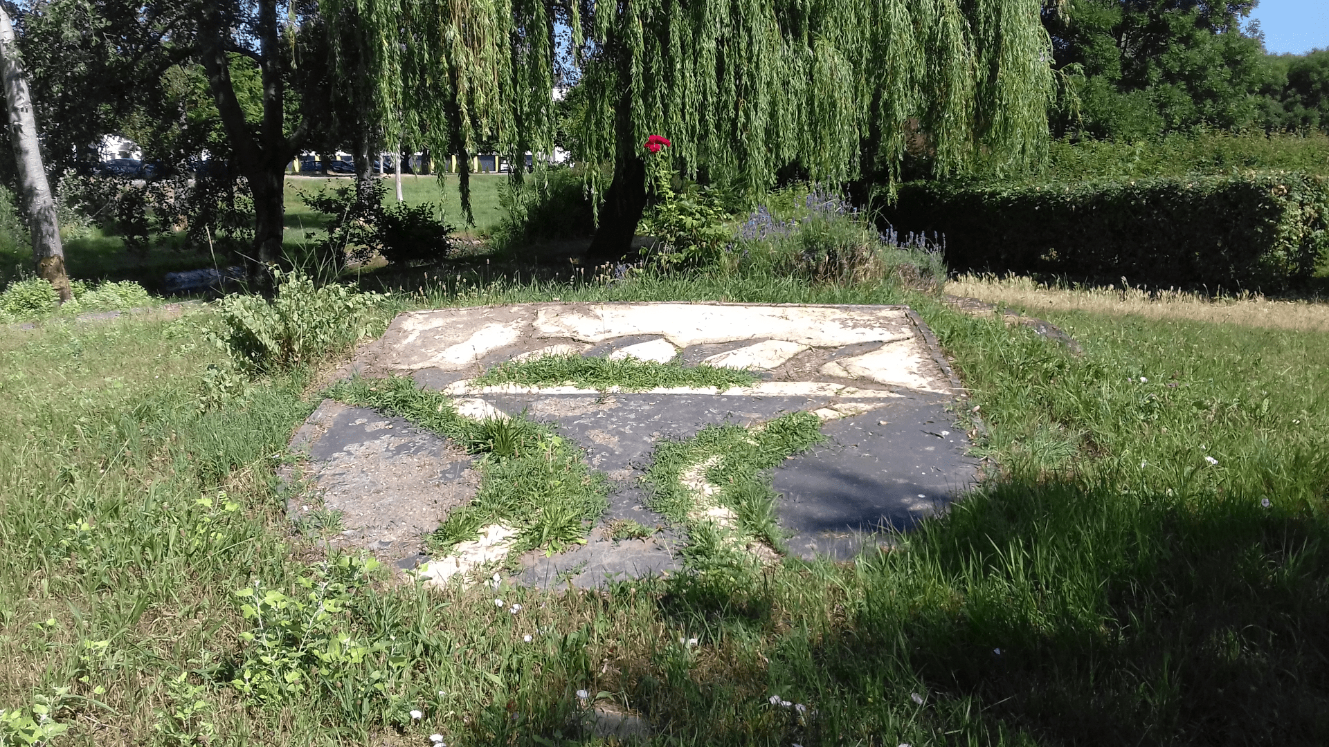 A talajelőkészítést (többszöri felrotálás, térkövezés) követően megkezdődött a látványtervben tervezett területek kialakítása. Sajnos azonban az előkészítő munkálatok elhúzódása, illetve a kiválasztott magaságyás beszerzése is nehézkes volt. Az általunk kiválasztott magaságyás fajtát alig, vagy csak közvetítőkön keresztül forgalmazták, árajánlatok többszöri megkeresés ellenére sem érkeztek. Fentiekben felsorolt okok miatt csak 2018 decemberében jutottunk el odáig, hogy sor került a 116 cm széles, 232 cm hosszú és 76 cm-es – a pályázatban vállalt 2 db helyett – 1 db magaságyás beszerzésére.